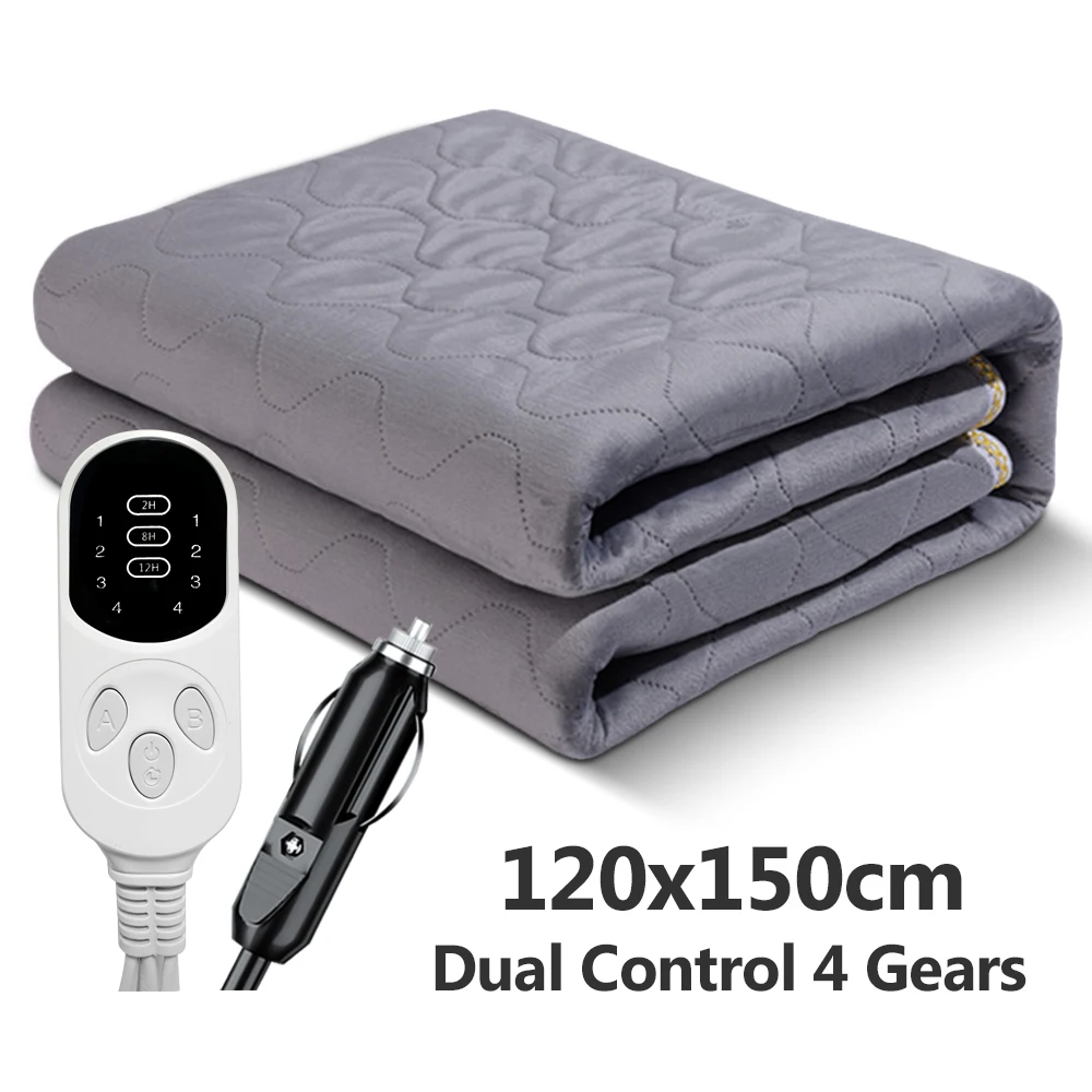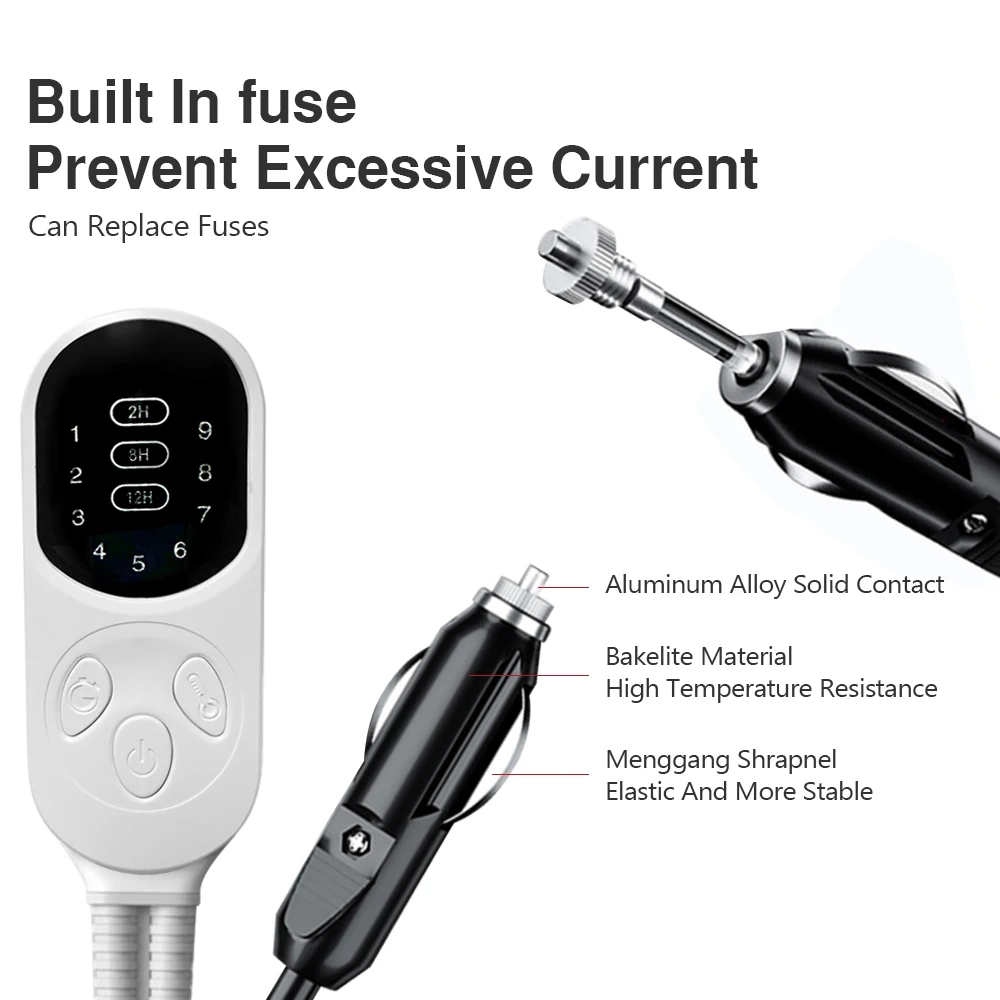 Stay warm on cold car rides or camping nights with this soft flannel 12V heated travel blanket. Featuring 9 adjustable heat levels, a digital timer, and durable heating wires, it provides quick, even warmth up to 50°C. Perfect for cars, SUVs, or home use (with converter). Available in three convenient sizes.