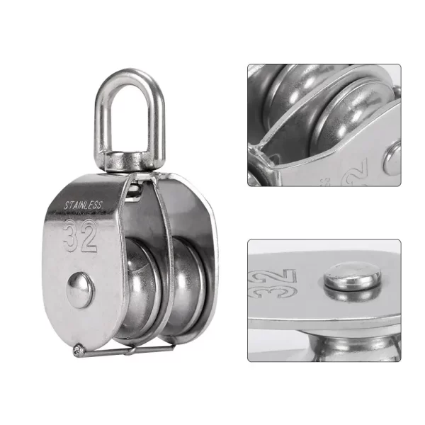 304 Stainless Steel Double Pulley Block – Heavy-Duty Rotating Lifting Pulley