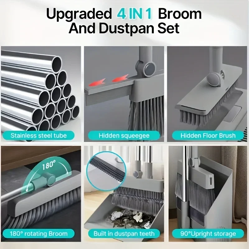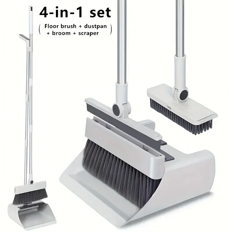 1 × 4-in-1 Broom Combo Set (Broom, Dustpan, Squeegee, Floor Brush)