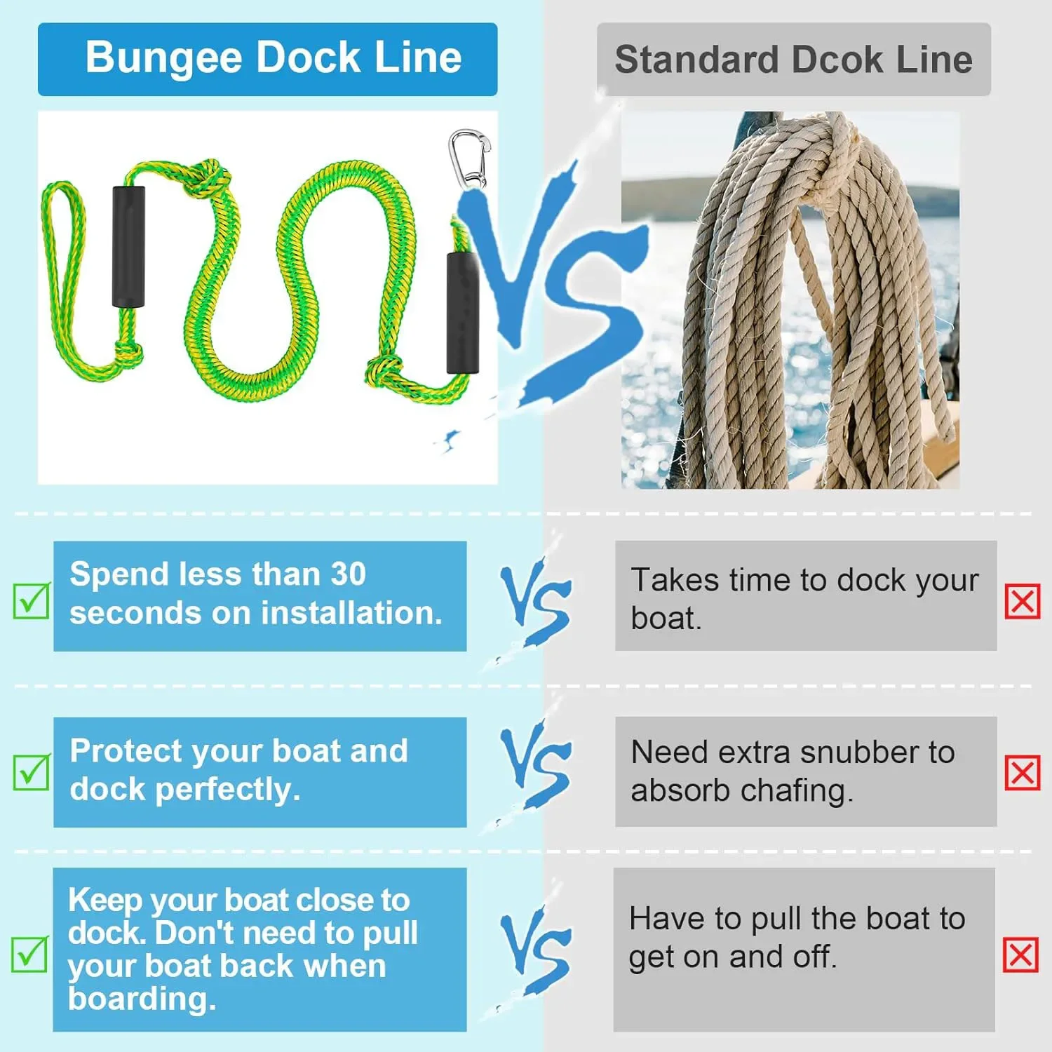 Hassle-Free Use – Simple to attach with no knots required. The bungee design allows for quick docking and ensures a secure hold for temporary stops.