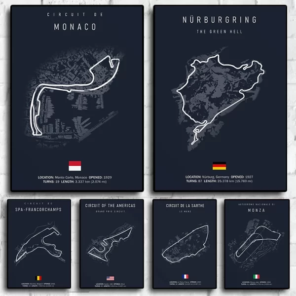 Celebrate the thrill of Formula 1 with this premium canvas wall art, showcasing the legendary Imola and Monaco circuits. Designed in a modern Nordic poster style, this motorsport-inspired artwork adds a sleek, aesthetic touch to any home, office, or fan space.