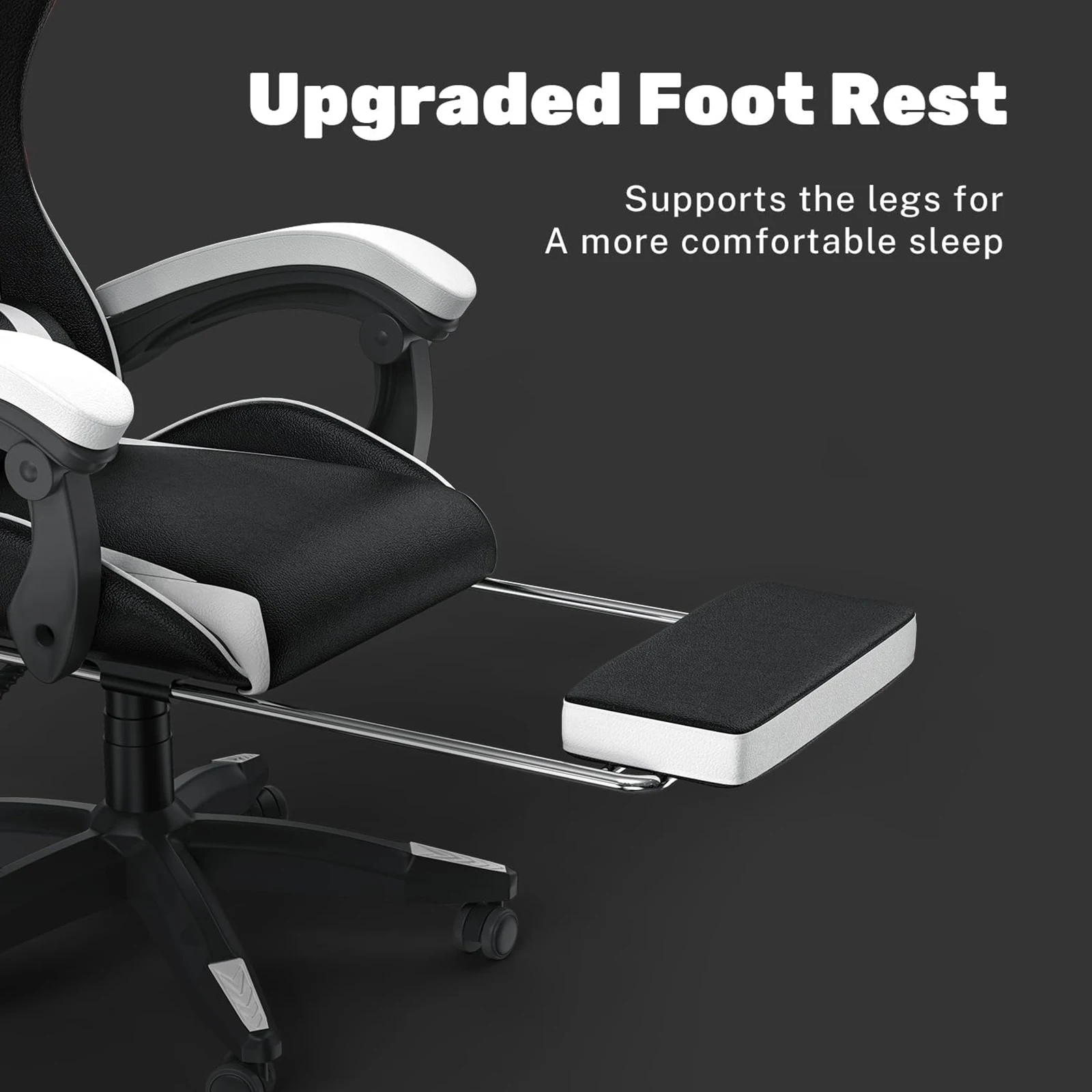 🦵 Built-In Retractable Footrest – Kick back and relax between games or tasks. The pull-out footrest supports your legs, improves circulation, and offers a perfect spot for quick naps or relaxed reading.