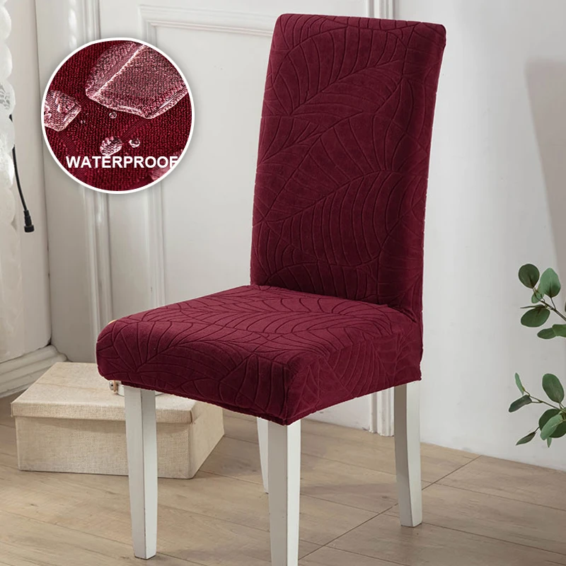 Stylish waterproof jacquard stretch chair covers for dining, weddings, hotels, and events. Protects chairs from spills and stains while adding a touch of elegance. Available in sets of 1–6.
